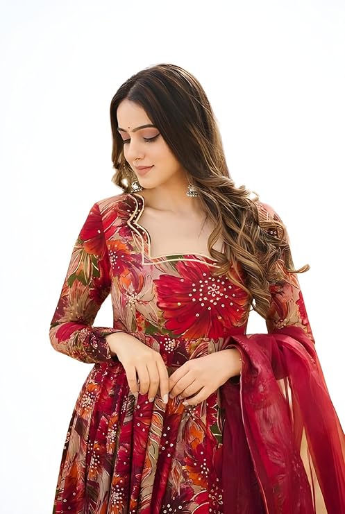 - Alluring Design: This Anarkali suit features a captivating red hue that exudes elegance and grace.